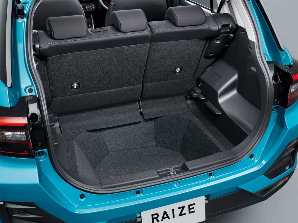 هرچند رایز اندازهٔ کوچکی دارد اما گفته شده از لحاظ فضای بار و فضای داخلی پیشروی کلاس خود است. حجم صندوق بار این خودرو در حالت عادی برابر با 369 لیتر است اما این عدد در صورت خواباندن صندلیهای عقب این عدد افزایش خواهد یافت. علاوه بر این، کراساوور جدید تویوتا در داخل کابین هم محفظههای زیادی را برای قرار دادن اشیاء ارائه میکند.