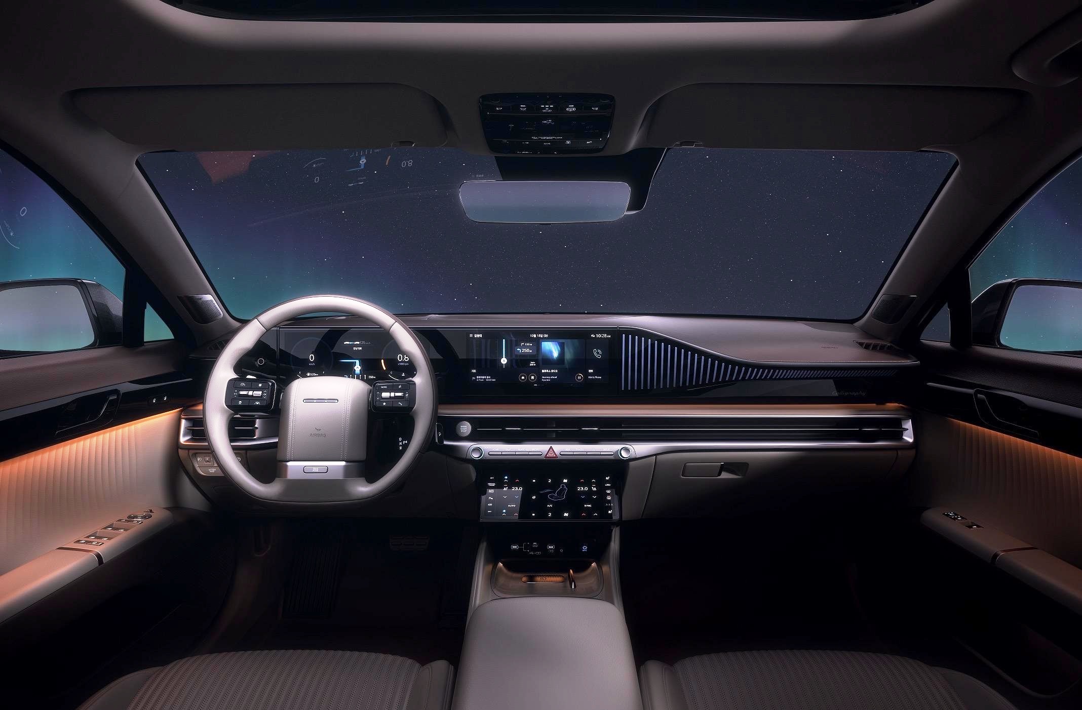 داشبورد و ادوات اصلی در نسل جدید آزرا /گرنجور نیز، شباهت زیادی به کابین خودروهای جنسیس دارند. دو نمایشگر با مجموع طول ۲۰ اینچ (۵۰ سانتیمتر) روبروی راننده تا وسط داشبورد خواهند بود. یک نمایشگر لمسی اضافی نیز در پایین نصب خواهد شد تا مثل یک تاچپد پیشرفته، برای کنترل تجهیزات رفاهی و سرگرمی استفاده شود. فناوریهای مدرن، مثل سیستم دریافت فرمان صوتی و اشاره، برای گرنجور ۲۰۲۳ ارائه خواهد شد. صندلیهای برقی، نورپردازی ملایم داخل کابین، ماساژور و نمایشگر مخصوص سرنشینان عقب، امکانات جانبی این خودرو خواهند بود.
