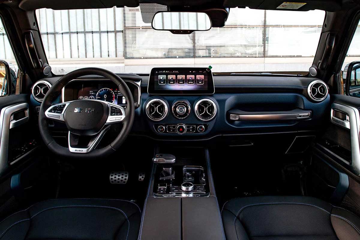 وقتی به داخل کابین دیار BJ40 می رویم نه خبری از تویوتا است و نه خبری از جیپ بلکه همه چیز تا حد زیادی از محصولات مرسدس بنز الگو برداری شده است.در کابین این خودرو ظرافتهای بیشتری مشاهده میشود. برای مثال مجموعه نشانگرها به صورت دیجیتالی هستند و یک نمایشگر افقی نیز برای سیستم سرگرمی خودرو در نظر گرفته شده است. بایک BJ40 به امکانات مناسبی نیز مجهز است که از جمله آنها میتوان به کروز کنترل، تنظیم برقی صندلی راننده، گرمکن صندلی جلو، سقف جدا شونده، چراغهای روشنایی در روز، سیستم صوتی با هشت بلندگو و سیستم تهویه مطبوع دوگانه اشاره کرد.
