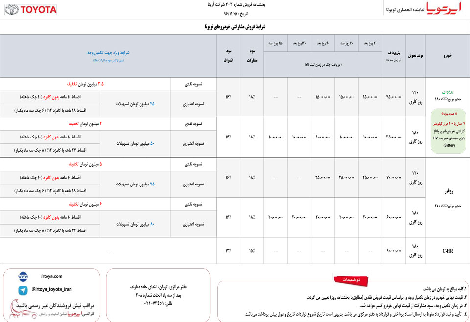 ایرتویا نماینده رسمی محصولات تویوتا جدیدترین بخشنامه فروش نقدی و اقساطی محصولات خود را اعلام کرد.