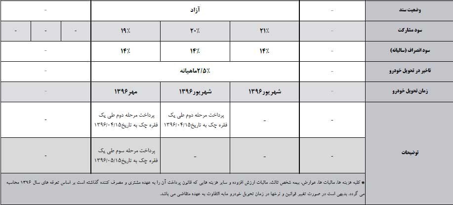 مهلت ثبت نام این خودرو از سوی کرمان موتور از 1396/03/08 تا 1396/03/26 اعلام شده است.