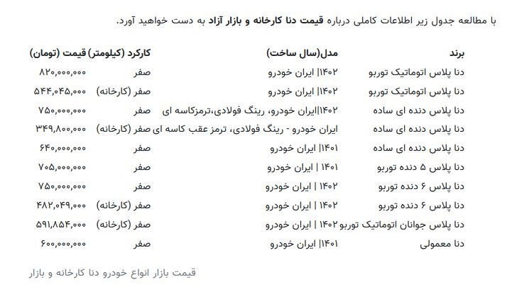 با مطالعه جدول زیر اطلاعات کاملی درباره قیمت دنا کارخانه و بازار آزاد به دست خواهید آورد.